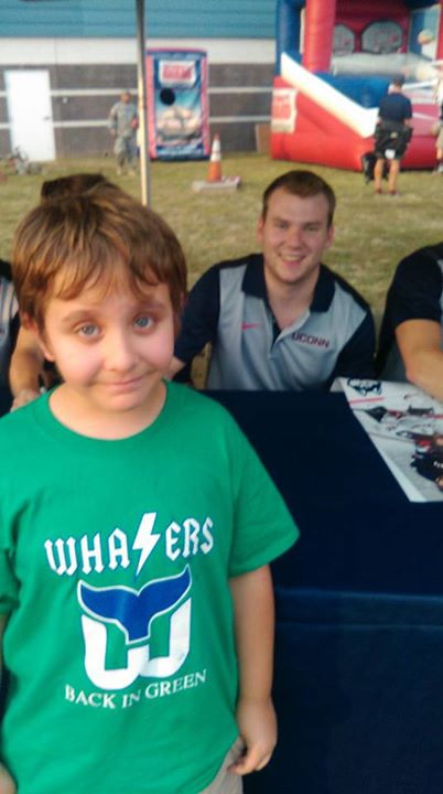 The team we saw last year was better than they should have been, but in all honesty not a very good one. What they had was enough heart (and a great goalie) to win a few games they shouldn’t have. There could not have been a better introduction than the home opener, a sold-out crowd of 8000, many of them skeptical college hockey virgins who had been warned repeatedly to expect UConn to be trounced by Boston College. My expectations were similar to those of the many NHL refugees whom I call friends; we’d all found the downgrade to developmental AHL hockey underwhelming, and expected NCAA to be more of the same minus fighting. It sounded boring, and to be quite honest, I was mostly there because UConn had come to the Whalers Booster Club and requested permission to use Brass Bonanza on goal. I didn’t expect much from college hockey but it was nice to have a team that actually wanted us as fans again.